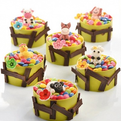 Prikupnih 6 domačih živalic v obliki jedilnih figuric že čaka, da jih postavite na vašo otroško torto.